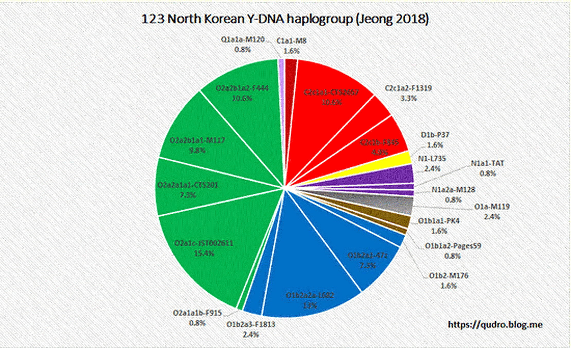 朝鲜的C2南支比例 18.8%(+6.2);O1b2比例24.3%;