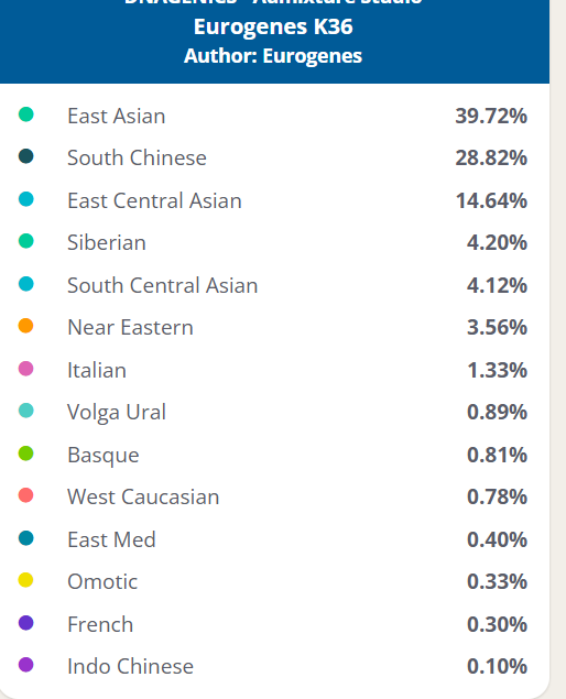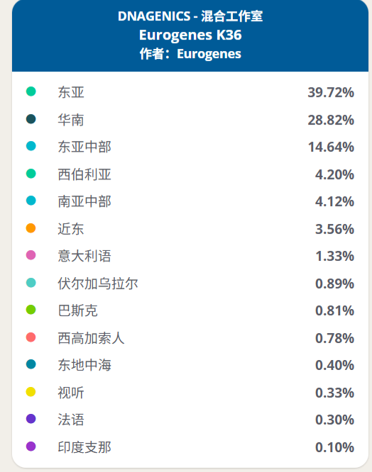 感兴趣的朋友可以将自己的K36结果上传,并说明祖籍及父母祖籍地,也可以私信楼主,将核心数据传给我,我帮你跑计算器并上传本帖!谢谢大家!