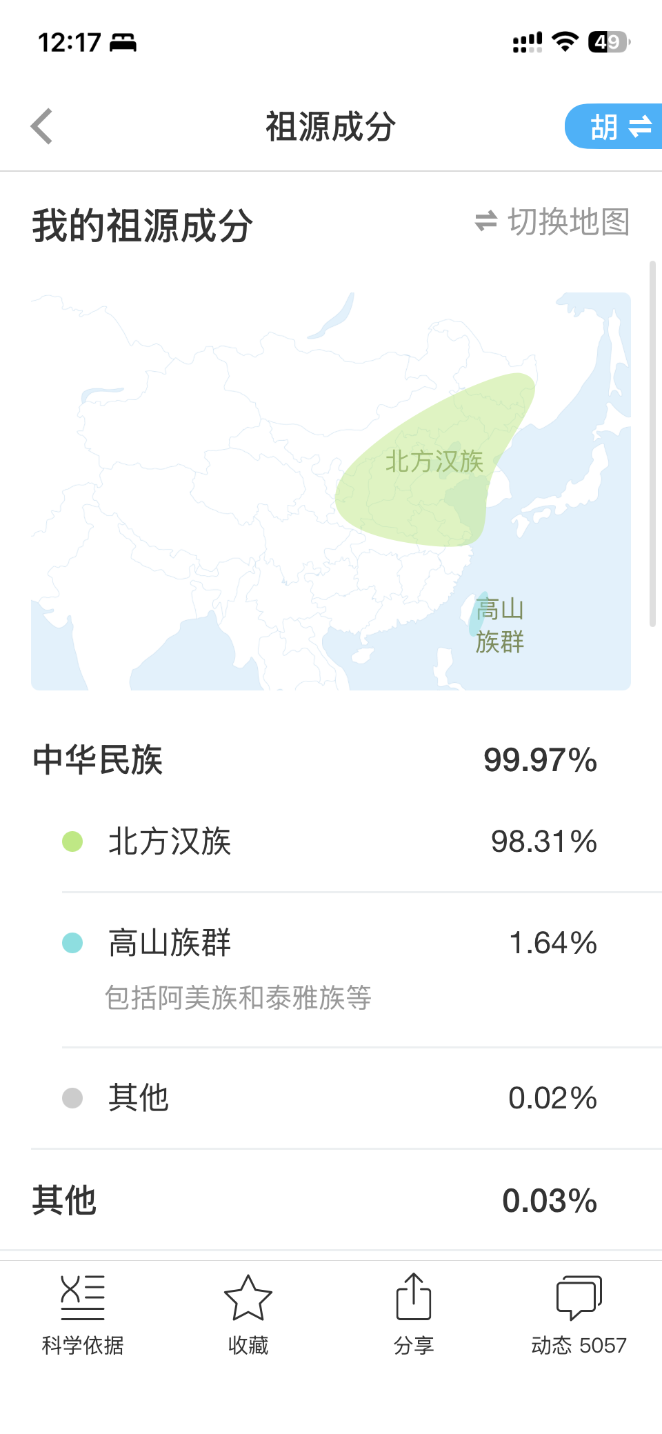 {"result":[{"race_desc":"\u4e2d\u534e\u6c11\u65cf","race_en":"chinese_nation","race_probality":"0.999700","area":[{"block":"chinese_nation","race_desc":"\u5357\u65b9\u6c49\u65cf","race_en":"han_southern","race_probality":"0.999590"},{"block":"chinese_nation","race_desc":"\u5176\u4ed6","race_en":"other","race_probality":"0.0002"}]},{"race_desc":"\u5176\u4ed6","race_en":"other","race_probality":"0.0003","area":[]}],"case_id":"ANCESTRY","prefix":null,"description":"\u7956\u6e90\u5206\u6790","color":null,"detail_url":"\/report2\/ancestry\/"}