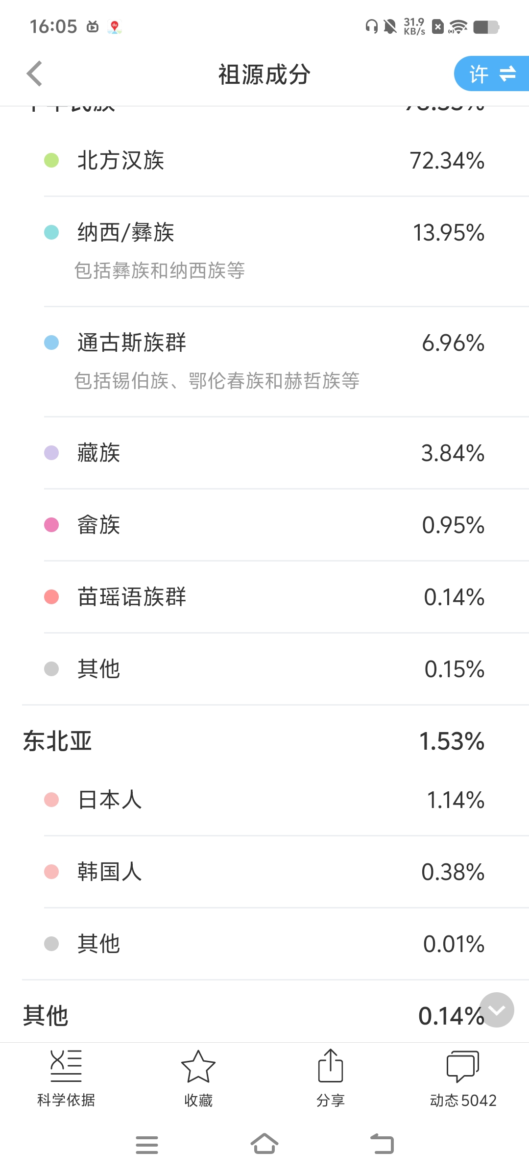 {"result":[{"race_desc":"\u4e2d\u534e\u6c11\u65cf","race_en":"chinese_nation","race_probality":"0.983318","area":[{"block":"chinese_nation","race_desc":"\u5317\u65b9\u6c49\u65cf","race_en":"han_northern","race_probality":"0.723401"},{"block":"chinese_nation","race_desc":"\u7eb3\u897f\/\u5f5d\u65cf","race_en":"ny","race_probality":"0.139531"},{"block":"chinese_nation","race_desc":"\u901a\u53e4\u65af\u65cf\u7fa4","race_en":"tungus","race_probality":"0.069616"},{"block":"chinese_nation","race_desc":"\u85cf\u65cf","race_en":"tibetan","race_probality":"0.038428"},{"block":"chinese_nation","race_desc":"\u7572\u65cf","race_en":"she","race_probality":"0.009570"},{"block":"chinese_nation","race_desc":"\u82d7\u7476\u8bed\u65cf\u7fa4","race_en":"miao_yao","race_probality":"0.001410"},{"block":"chinese_nation","race_desc":"\u5176\u4ed6","race_en":"other","race_probality":"0.0015"}]},{"race_desc":"\u4e1c\u5317\u4e9a","race_en":"ne_asian","race_probality":"0.015301","area":[{"block":"ne_asian","race_desc":"\u65e5\u672c","race_en":"japanese","race_probality":"0.011421"},{"block":"ne_asian","race_desc":"\u97e9\u56fd","race_en":"korean","race_probality":"0.003870"},{"block":"ne_asian","race_desc":"\u5176\u4ed6","race_en":"other","race_probality":"0.0001"}]},{"race_desc":"\u5176\u4ed6","race_en":"other","race_probality":"0.0014","area":[]}],"case_id":"ANCESTRY","prefix":null,"description":"\u7956\u6e90\u5206\u6790","color":null,"detail_url":"\/report2\/ancestry\/"}